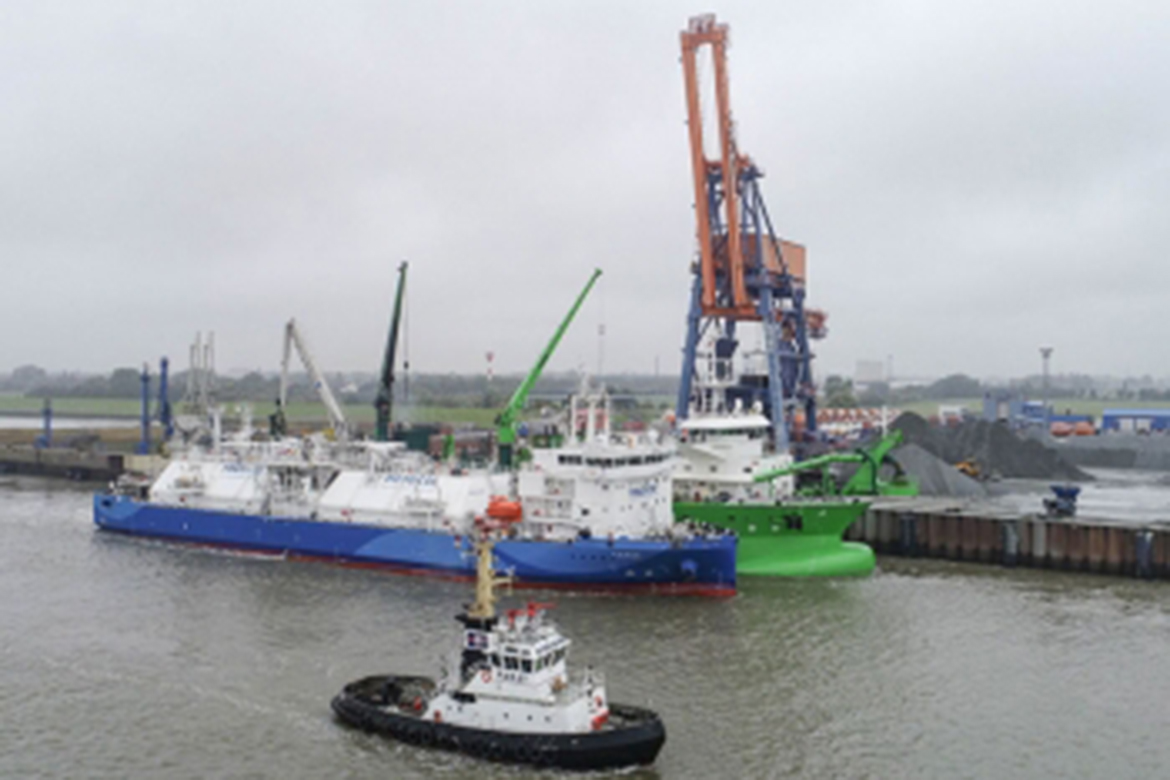 Ein weiterer Meilenstein zur Etablierung von LNG (Liquefied Natural Gas) in der Schifffahrt und in Deutschland ist erreicht. Im Brunsbütteler Elbehafen führte Nauticor erfolgreich die erste LNG Ship-to-Ship Bebunkerung Deutschlands durch. Der Laderaumsaugbagger Scheldt River hat den emissionsarmen Treibstoff LNG von dem Bunkerschiff Kairos übernommen.