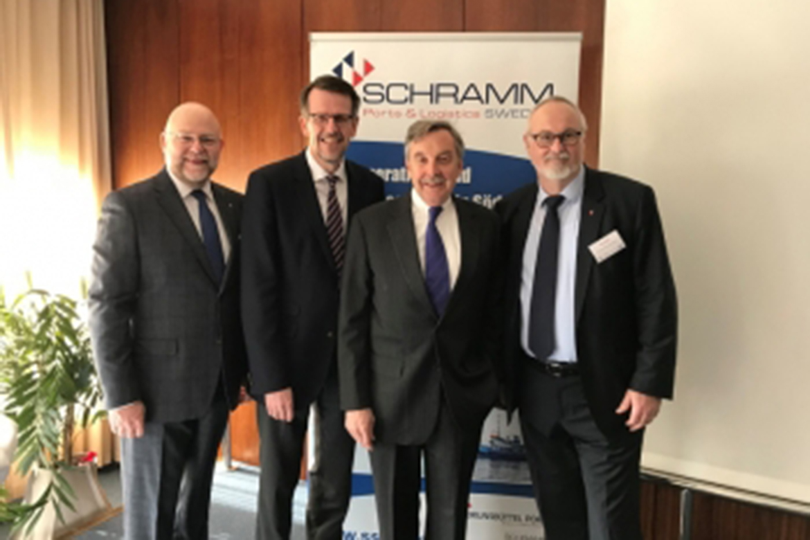 Erfolgreiche Premiere für das German-Swedish Port Event. SCHRAMM Ports & Logistics und Söderhamns Stuveri & Hamn präsentierten sich gemeinsam mit Hafen Hamburg Marketing und PORT OF KIEL bei einer Informationsveranstaltung in Stockholm. Ausbau des Hafens Orrskär in Söderhamn geplant.